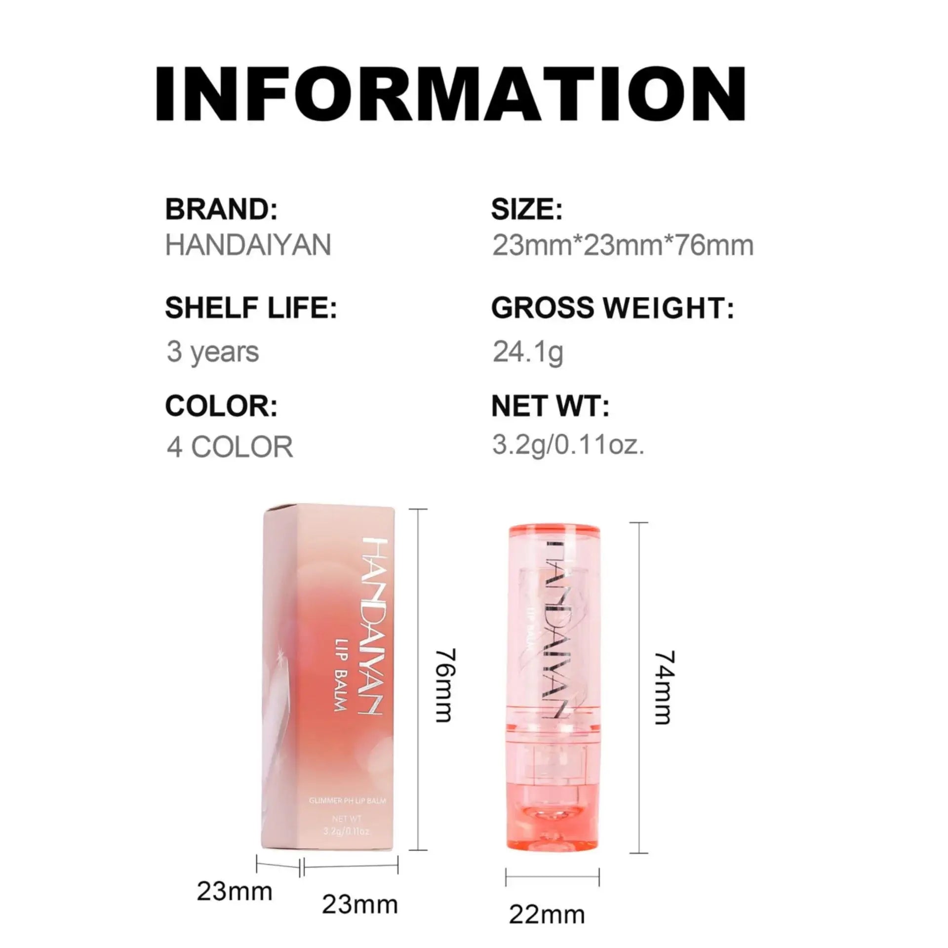 Meet the Handaiyan Color Changing Crystal Lip Balm, a lipstick that adapts to you. This innovative lip gloss reacts to your skin’s natural pH and temperature, creating a personalized pink shade that’s uniquely yours. With a hint of glitter, it delivers a dazzling finish that makes your smile truly unforgettable.